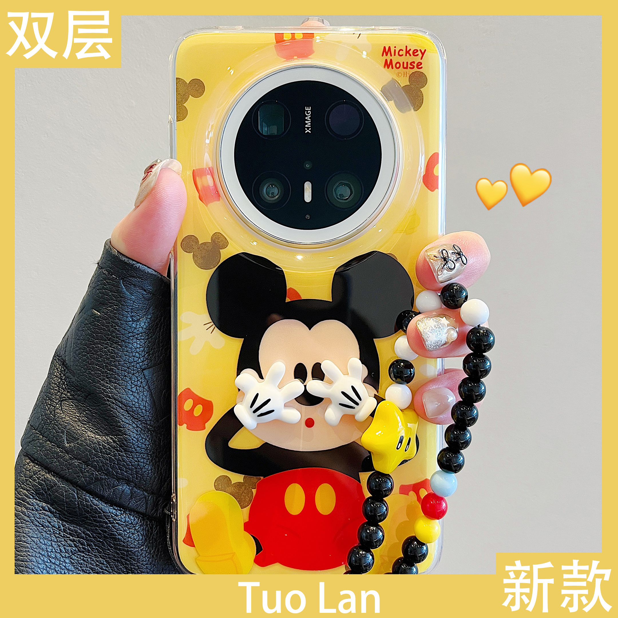 手掌米奇镜子适用苹果16promax手机壳华为pura80荣耀4