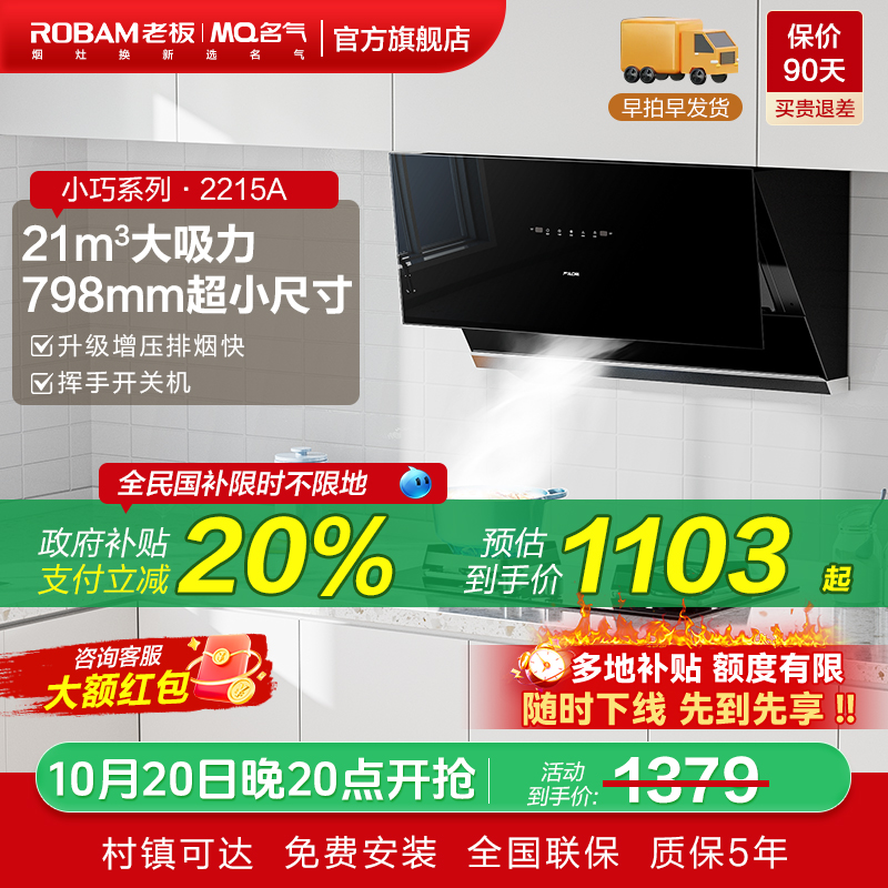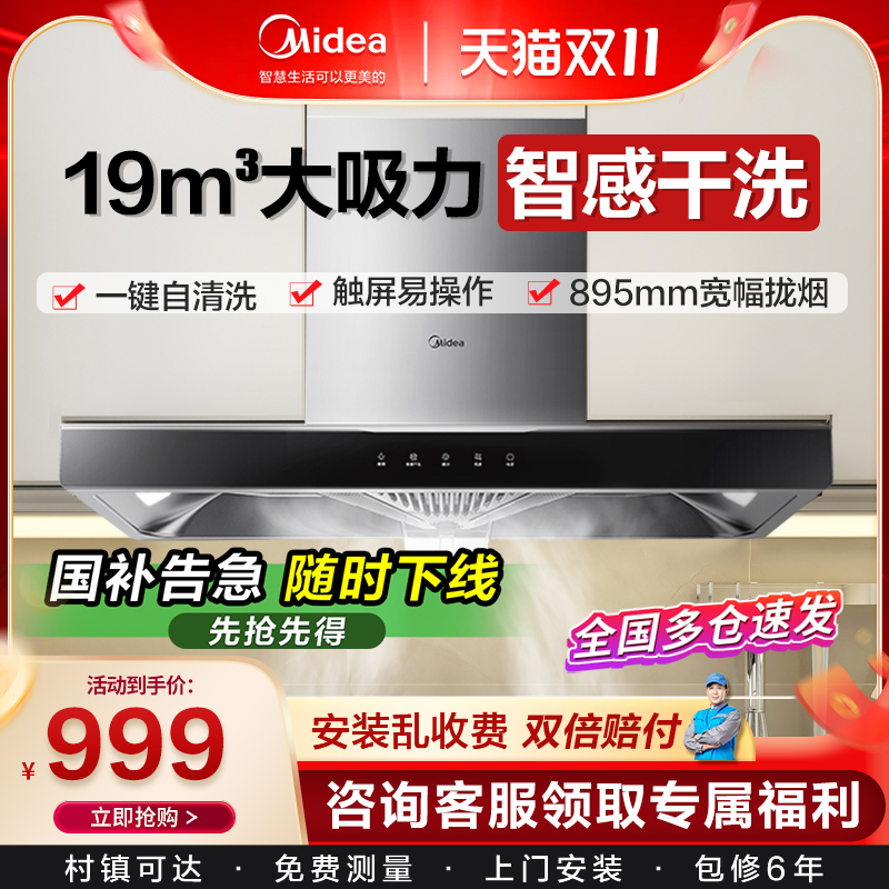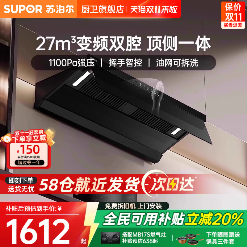 苏泊尔抽油烟机家用厨房大吸力7字式吸油机自动清洗抽烟机ML10