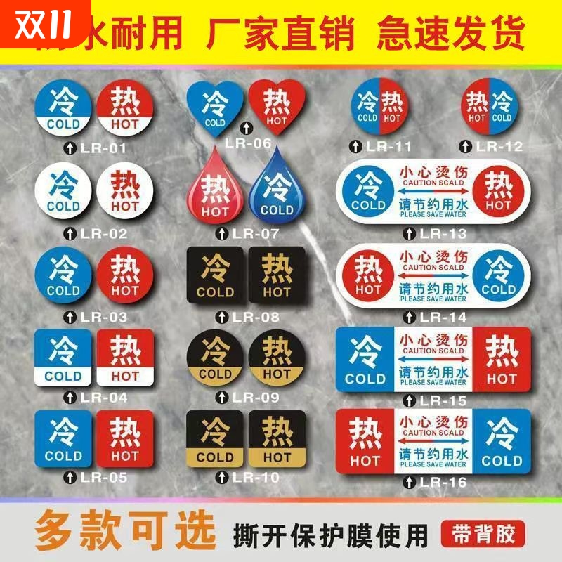 亚克力冷热水标识贴家用防水温馨提示墙贴酒店卫生间水龙头冷水标