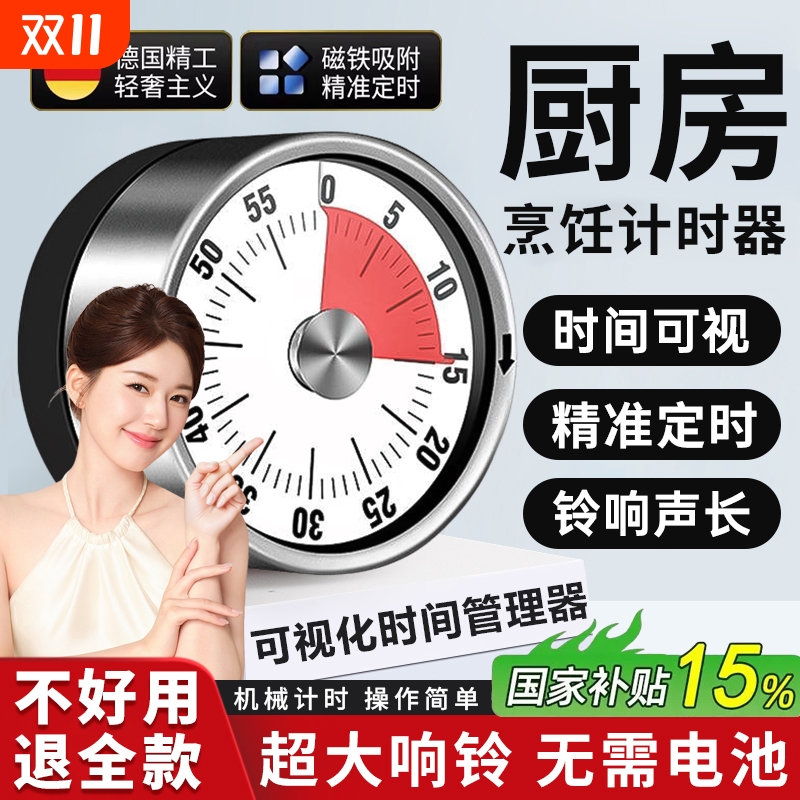 厨房做饭计时器烘焙机械定时提醒器可视化时间管理学习倒计时磁吸