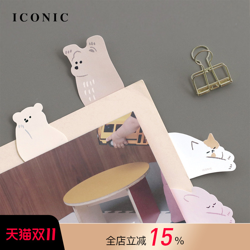 韩国ICONIC可爱动物造型彩色印花便签贴猫咪兔子白熊棕熊图案4