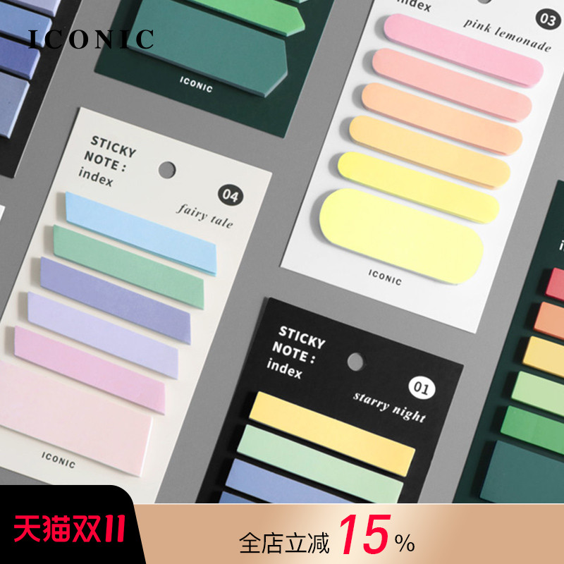 韩国ICONIC渐变色简约造型便签贴套组读书资料标记标注留言提醒