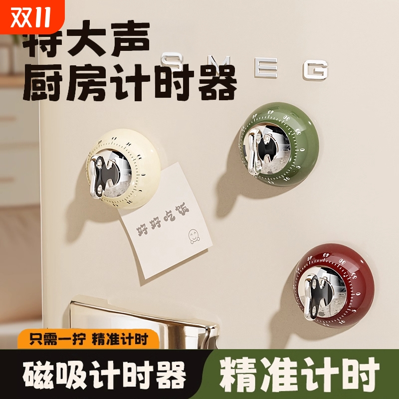 复古圆形机械计时器冰箱贴厨房做饭提醒器大声音磁铁定时器磁吸