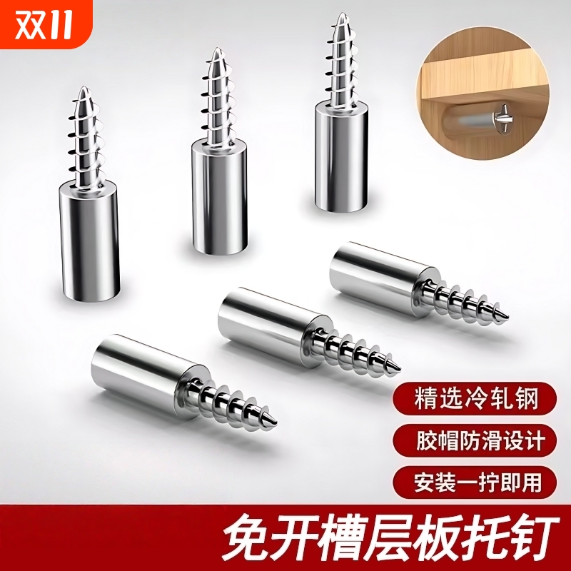 一体自攻螺丝层板托衣柜固定支撑隔板粒托钉橱五金配件置物架钉