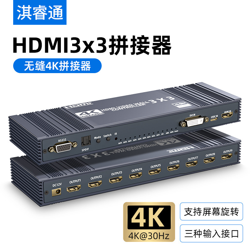 4k视频画面拼接播放器高清hdmi电视机大屏分配处理多屏宝一进四