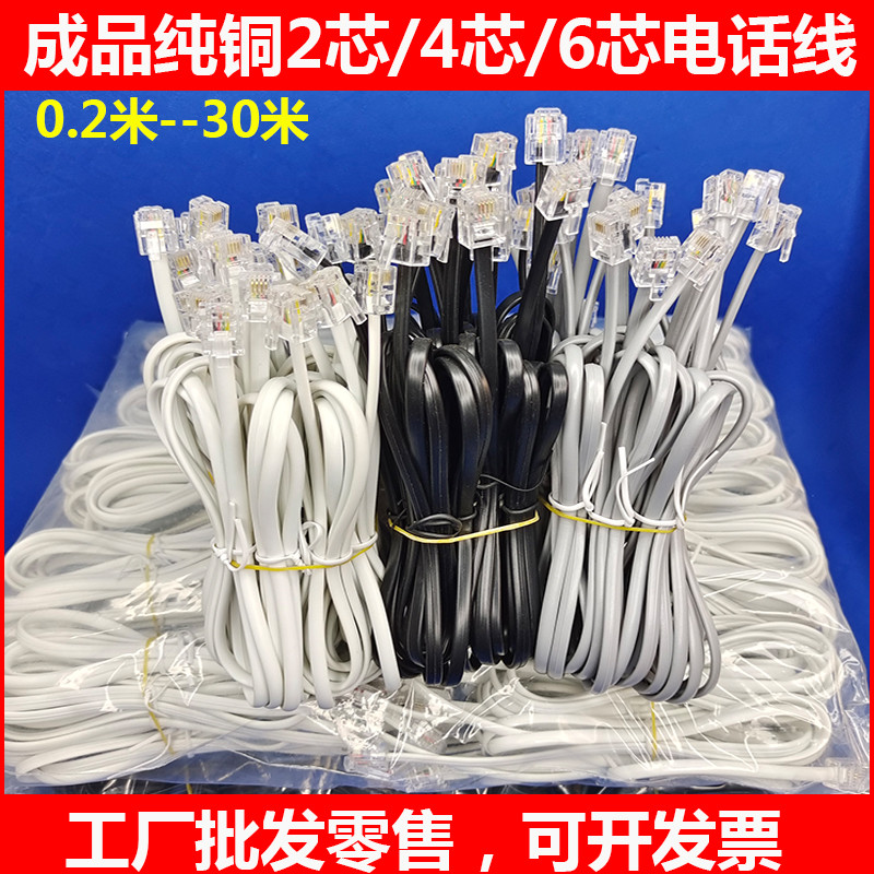 座机电话线2芯4芯6芯两四六芯室内外延长成品电话机连接线固话对1