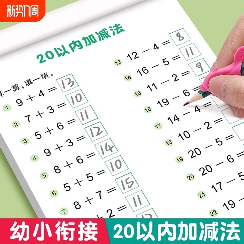 1020以内加减法天天练口算题卡幼儿园数学题中班大班幼儿练习册幼