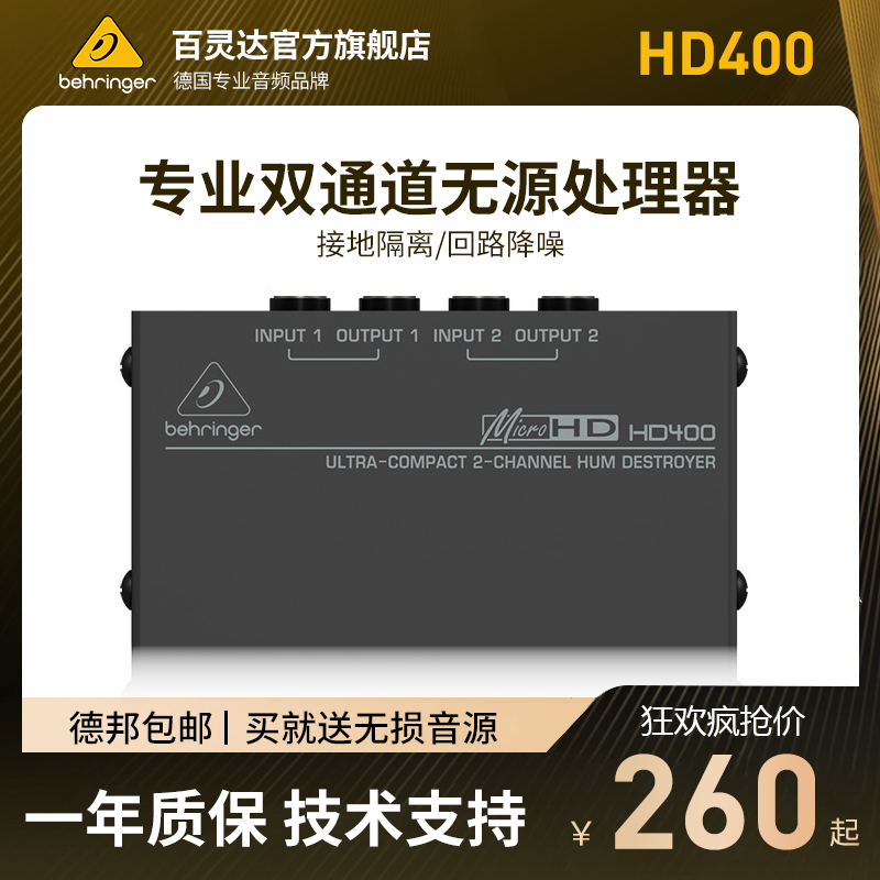 BEHRINGER/百灵达 HD400 专业断地降噪器 平衡信号