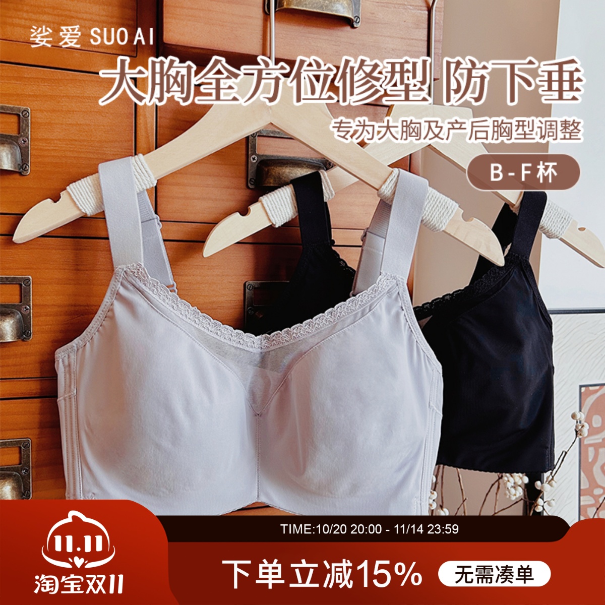 千奈美新品提拉大胸显小无钢圈内衣女全罩杯大包裹收副乳文胸罩