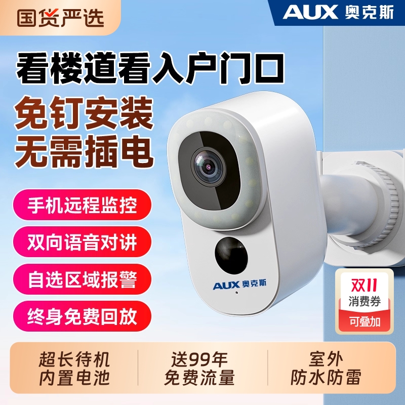奥克斯摄像头无线门口监控楼道入户门无需wifi网络免插电不插电式