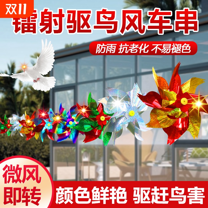 镭射驱鸟风车反光七彩户外室外驱鸟彩色果园专用驱鸟器旋转悬挂