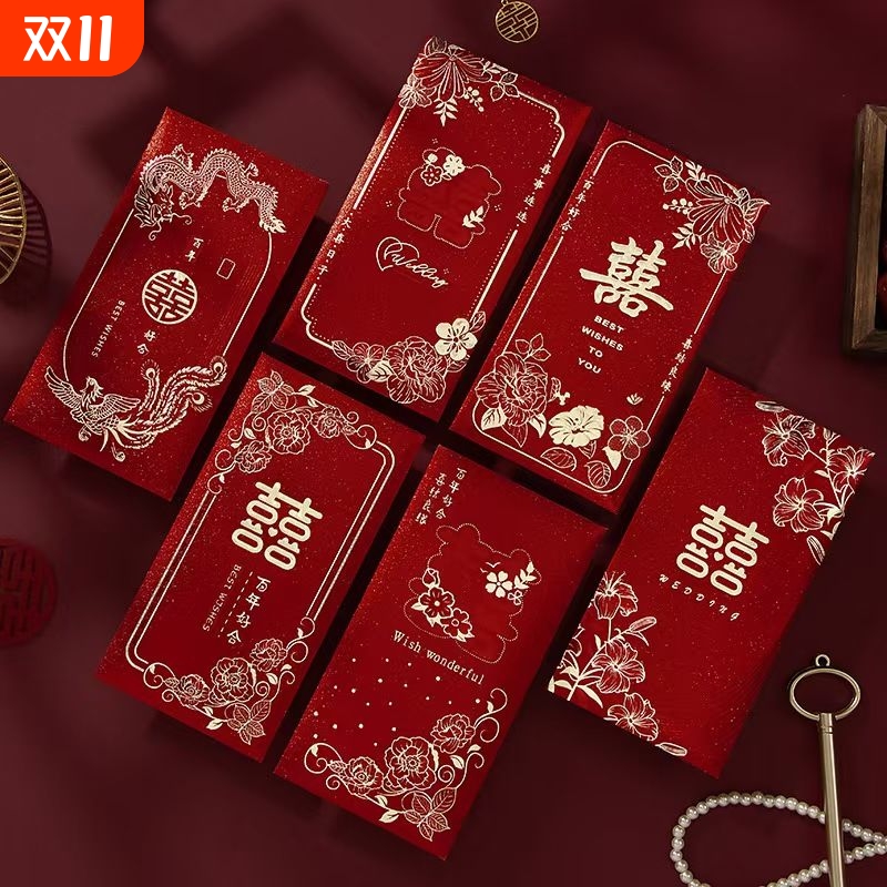结婚专用红包新款复古创意轻奢利是封随礼长款新婚改口喜字红包袋