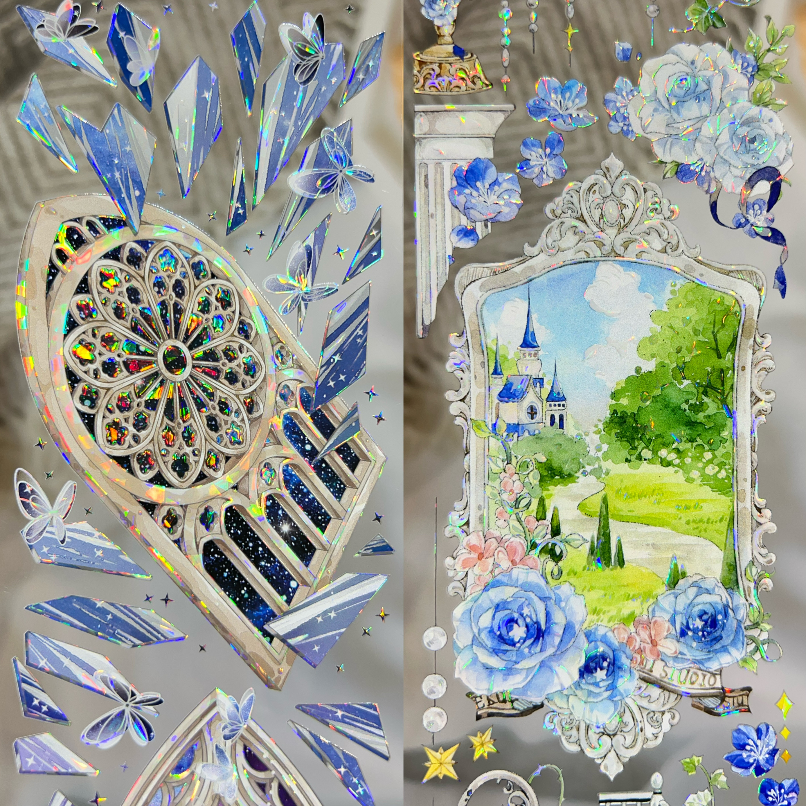 野葵分装胶带谧蓝童话祷告圣堂小轩窗晚宵沉月背景流麻咕卡手账