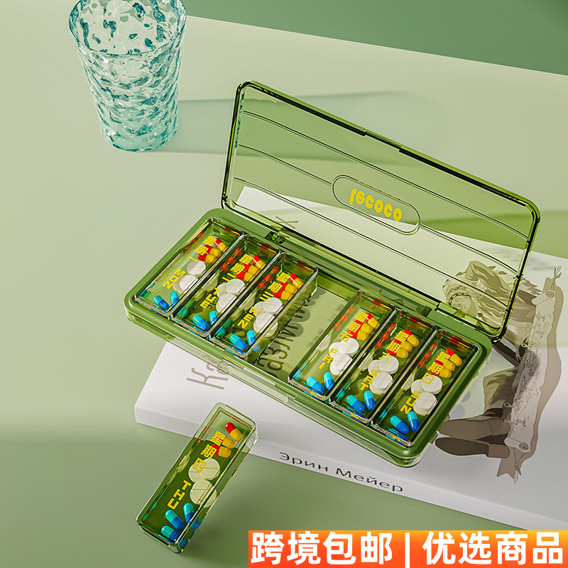 新款药品分装盒7天药盒便携式分药早午晚提醒随身大容量密封防潮