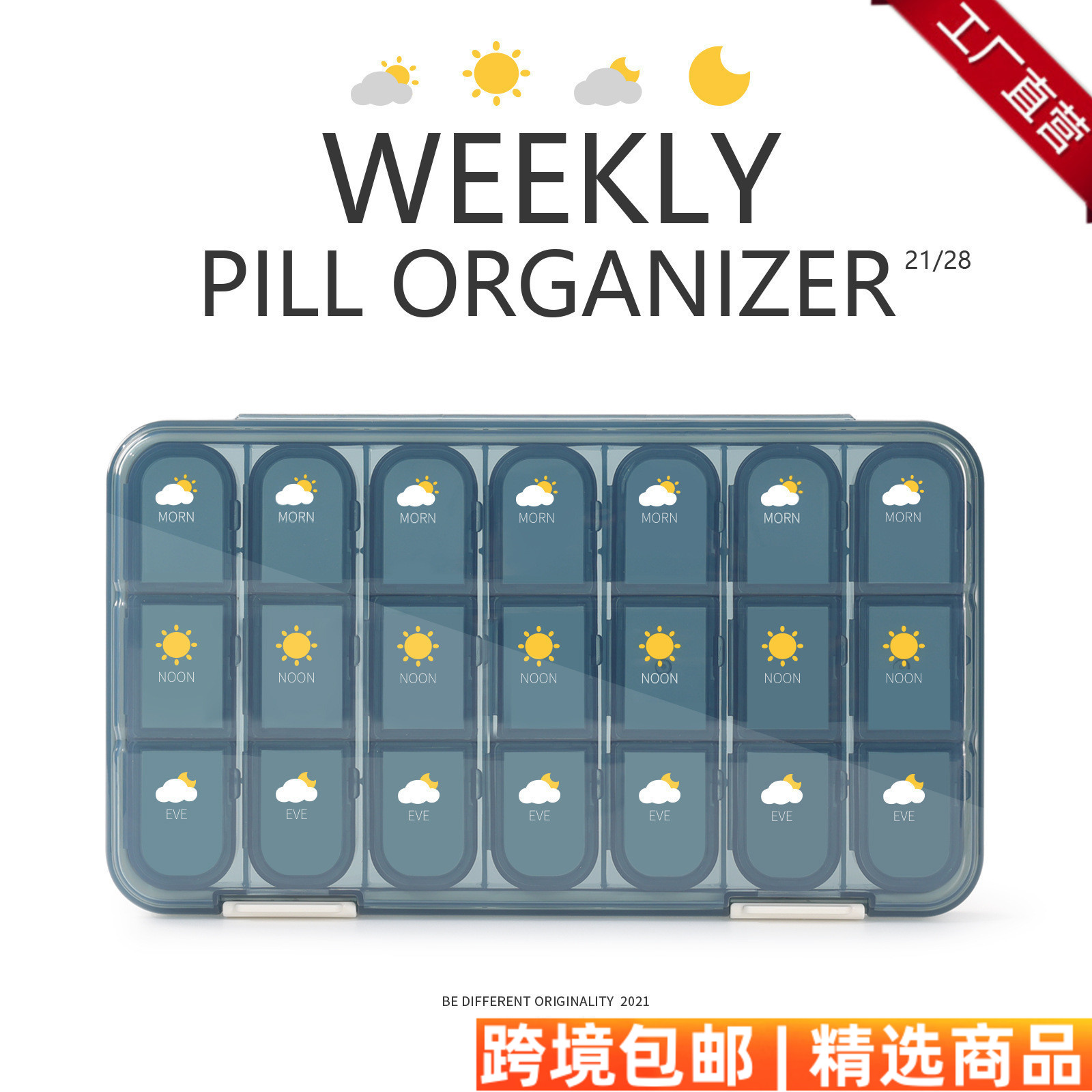 药盒一周七天便携早午晚提醒随身21格28格分药器药物药品分装盒