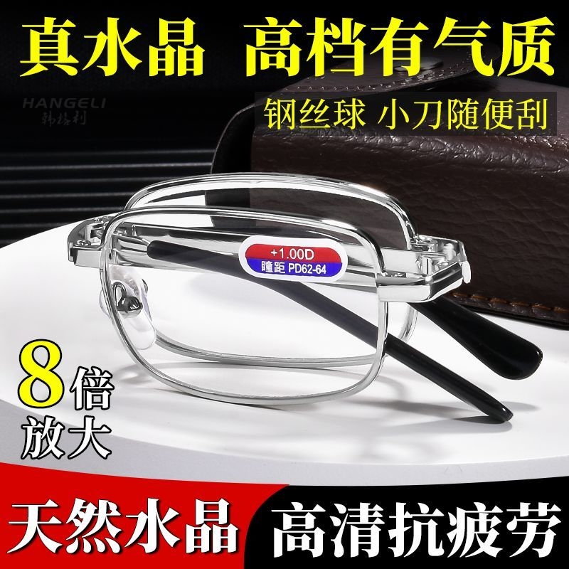 折叠老花镜老花眼镜正品眼镜男中老年老花水晶可折叠高档玻璃镜片