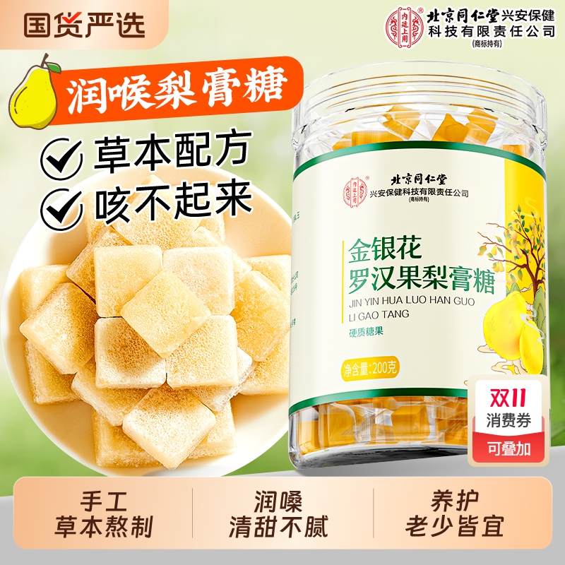 北京同仁堂百草梨膏糖罗汉果手工清润痰化咳止官方旗舰店内廷上用