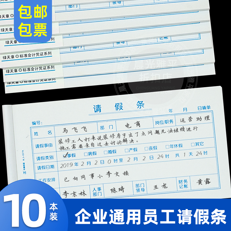 10本绿天章请假条请假单开假条单外出病价条假条证明休假单财务单