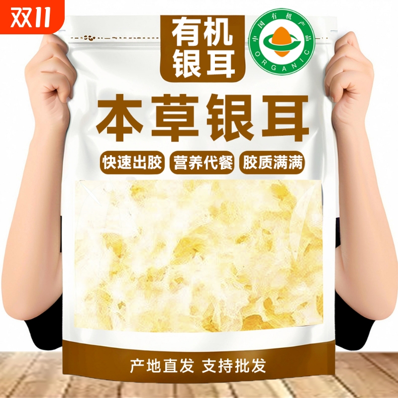 有机本草银耳天然无硫新货银耳冲泡银耳羹即食免洗易出胶