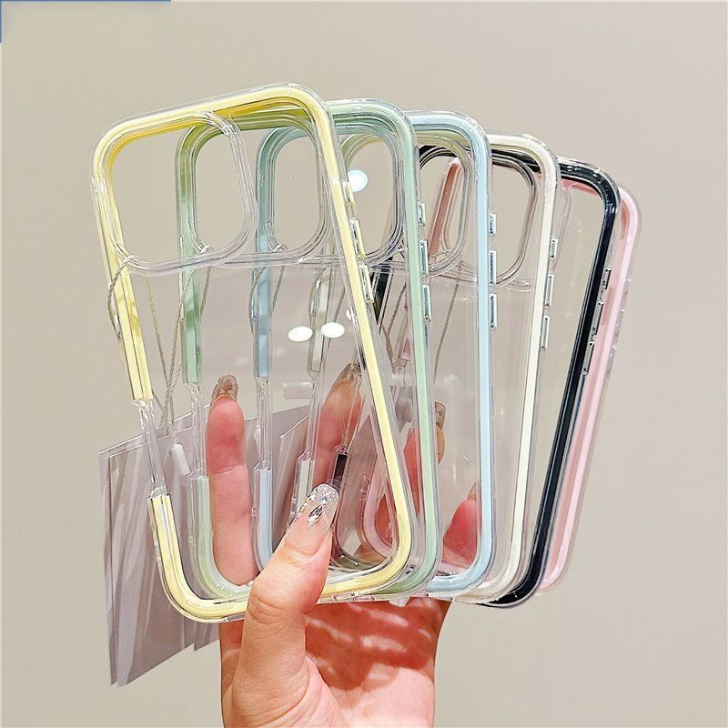适用撞色边框透明手机壳适用苹果15小清新iPhone14简约13