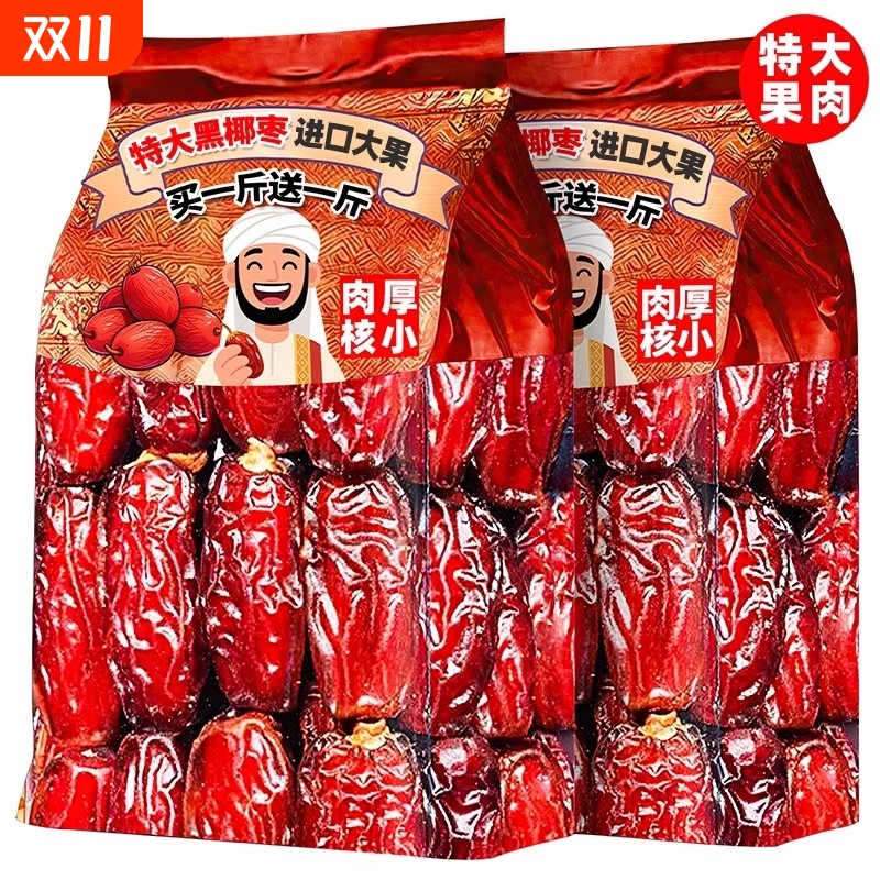 椰枣黑耶枣非特级迪拜阿联酋沙特伊朗进口新特疆产果干蜜饯旗舰店
