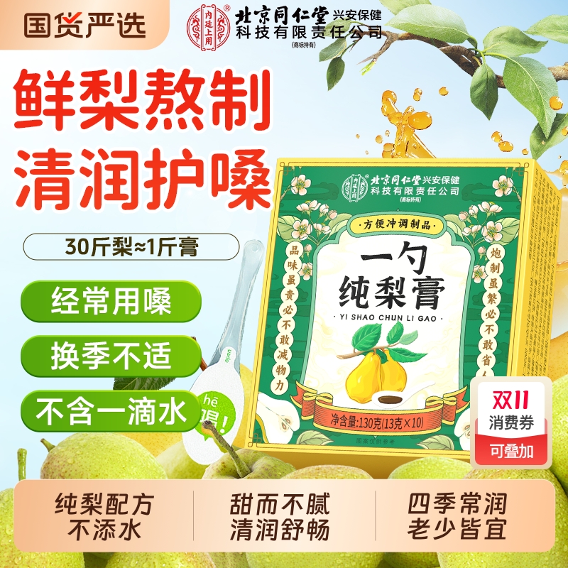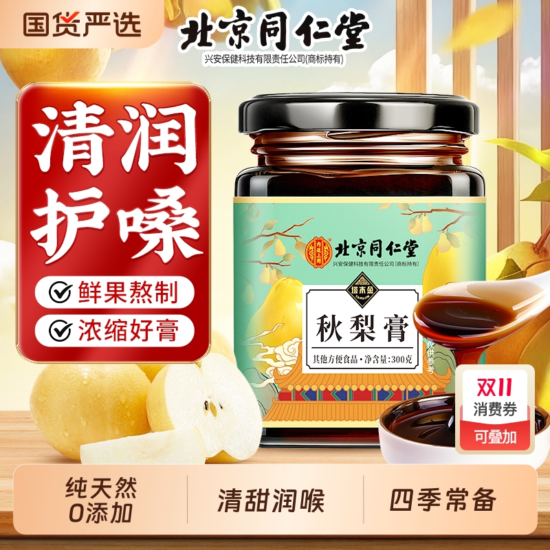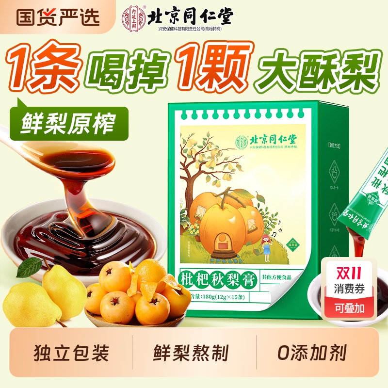 北京同仁堂枇杷秋梨膏泡水婴幼儿童润肺止咳化痰润喉无添加纯梨膏