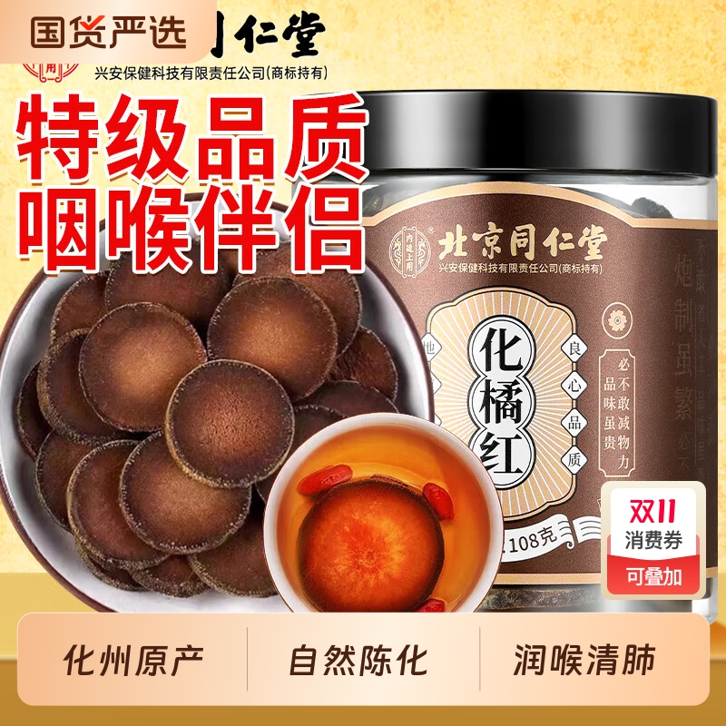 北京同仁堂新会老陈皮官方旗舰店中药材橘皮橙皮干化泡水化痰止咳