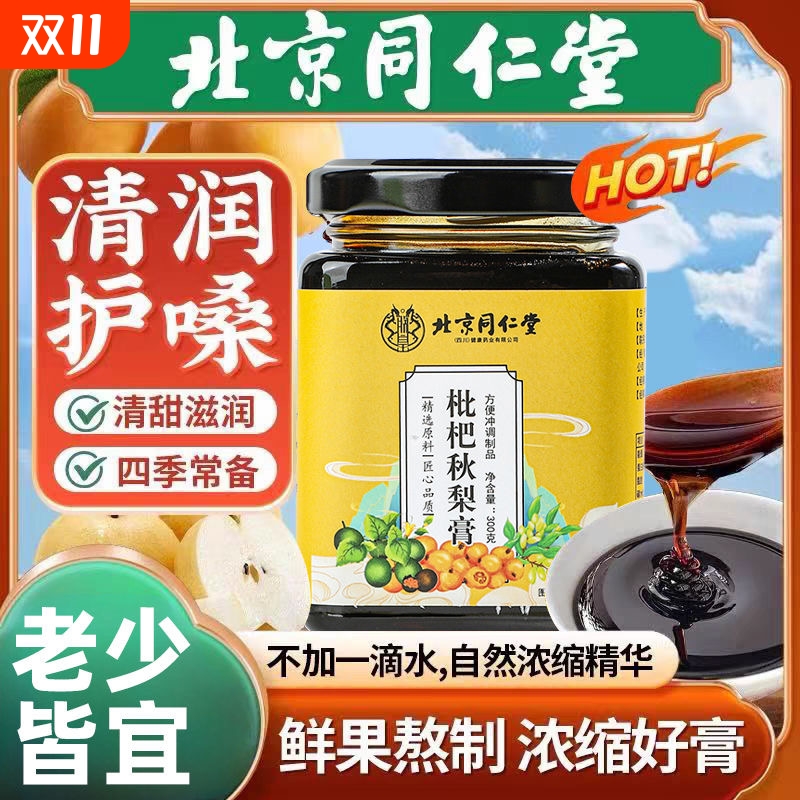 北京同仁堂枇杷秋梨膏护嗓止咳润肺官方旗舰店正品儿童琵琶梨膏