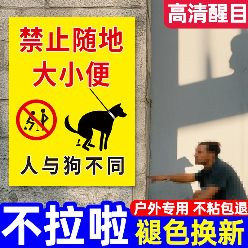 严禁宠物在此大小便警示牌人与狗不同禁止随地大小便文明遛狗标语提示