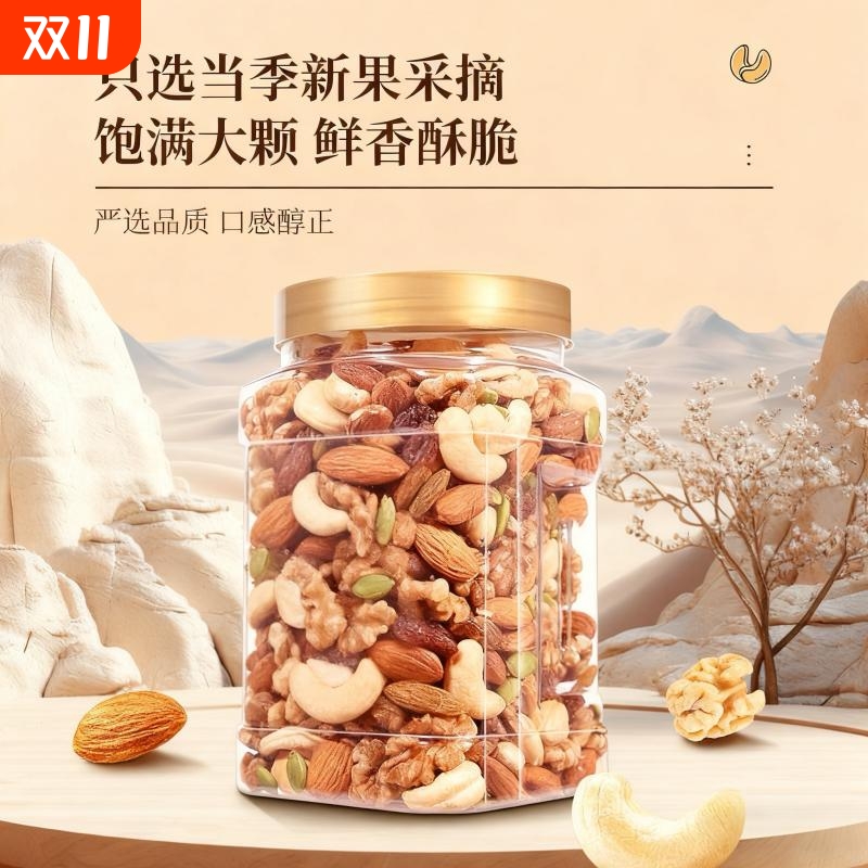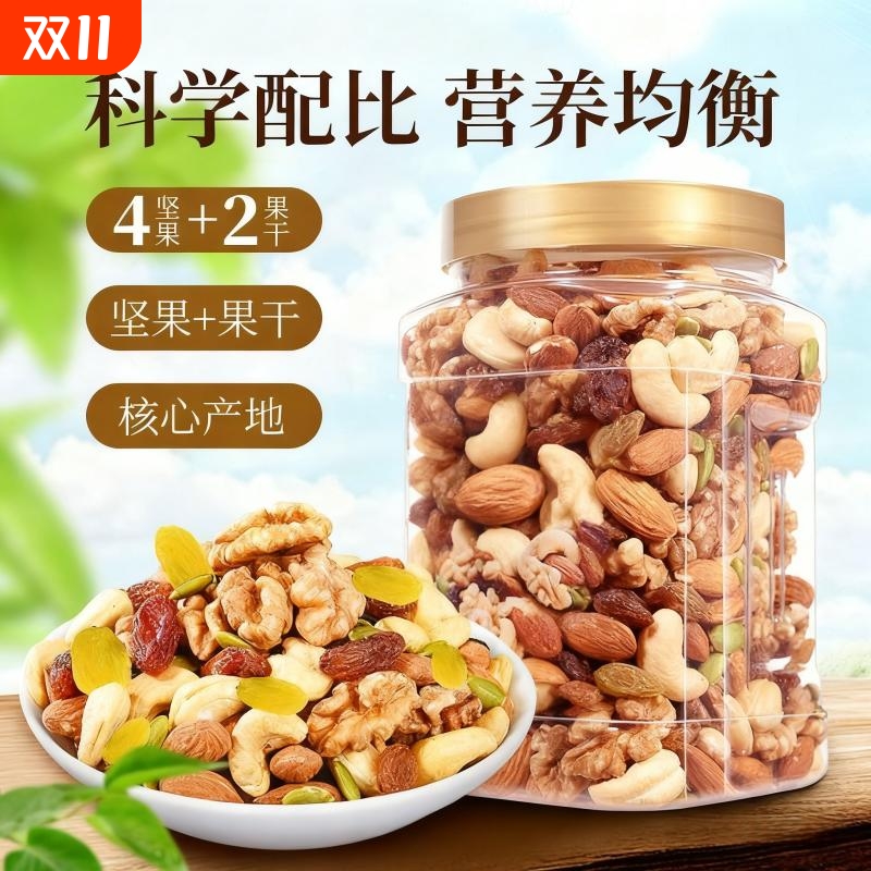 每日坚果纯坚果混合果仁原味罐装500g减脂期代餐孕妇营养零食25