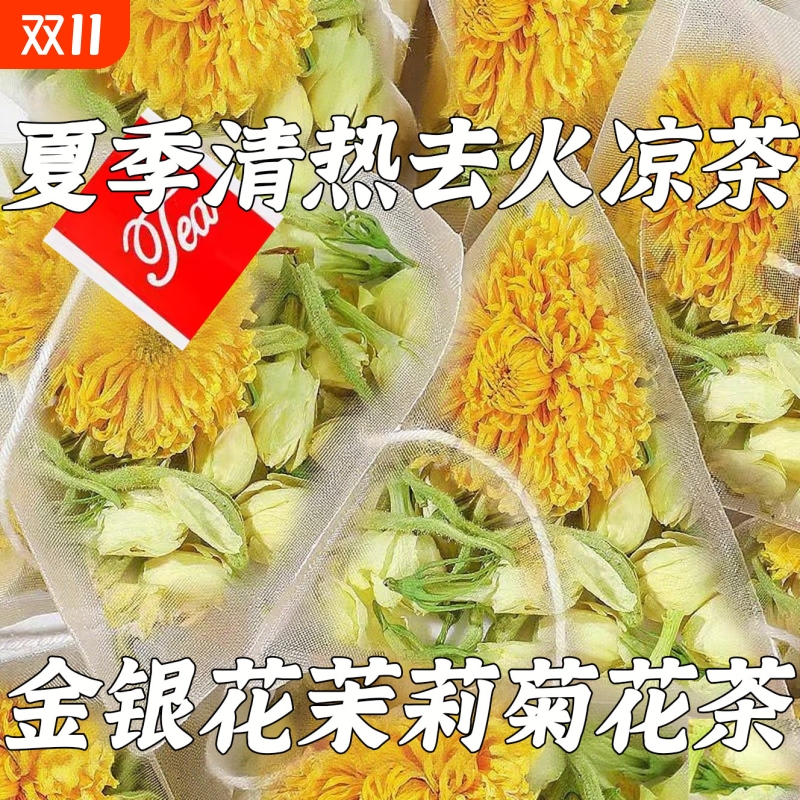 金银花菊花茶去火清热毒解茉莉花熬夜清润三花下火养生茶独立包装