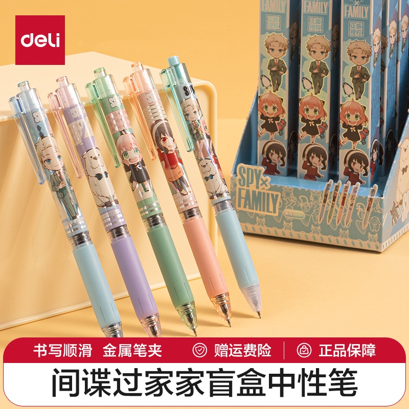 得力间谍过家家联名笔盲盒中性笔速干ST联名学生按动式按压大容量水