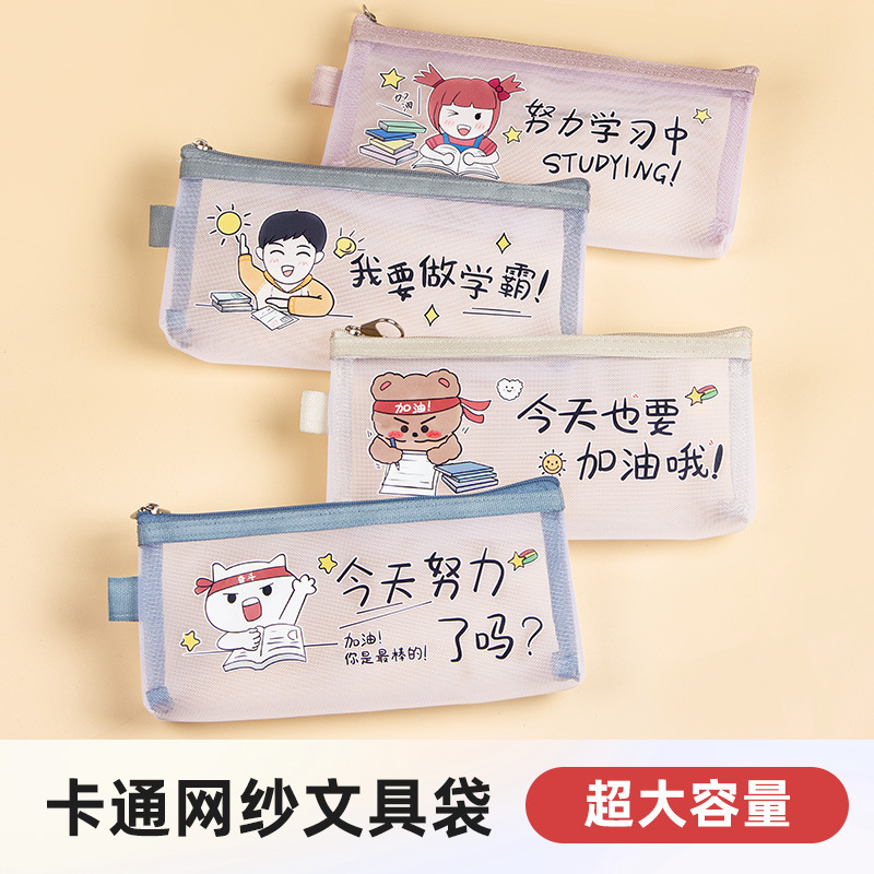 可爱卡通网纱笔袋ins高颜值小学生透明铅笔袋大容量文具袋批发