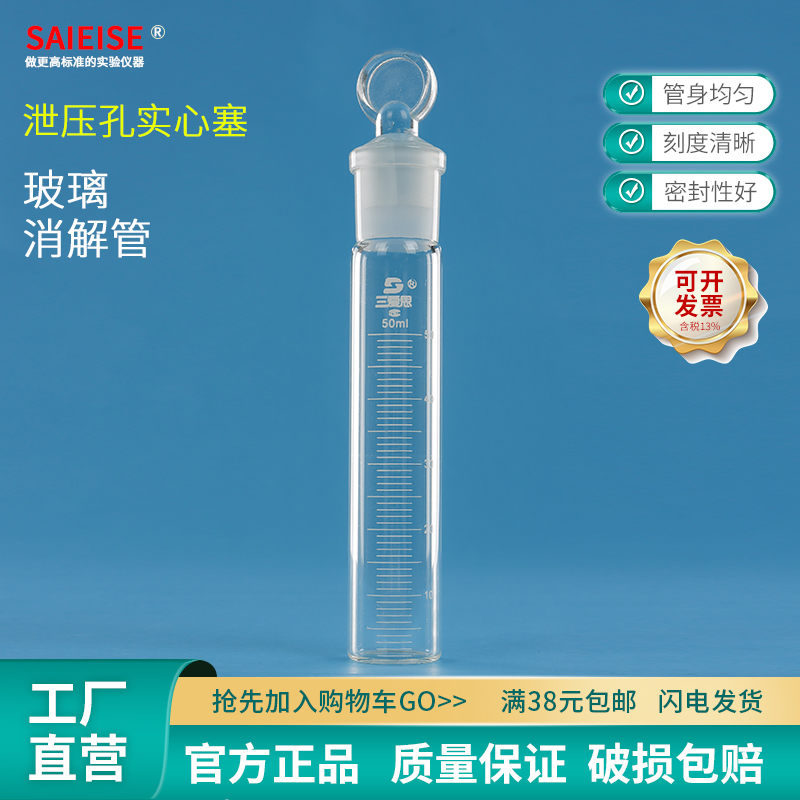SAIEISE玻璃消解管带刻度 消煮管 试管消化管带泄压孔 具塞