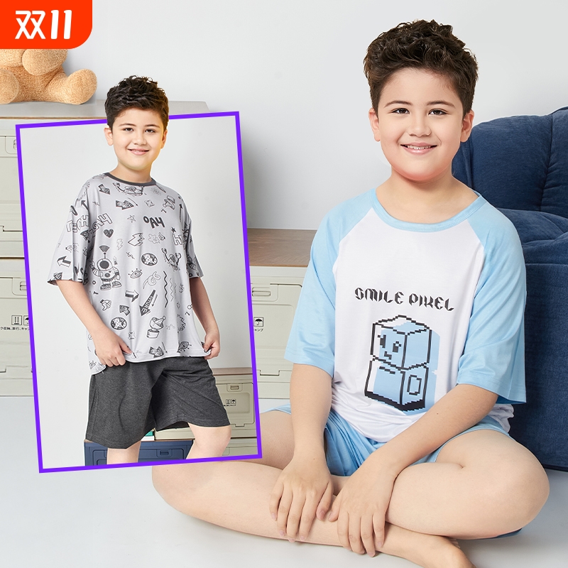 胖童装新款家居服套装短袖T恤中大童男童洋气学生休闲睡衣两件套