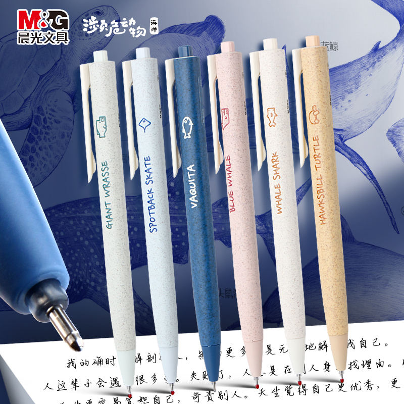 晨光按动植物残渣笔杆中性笔