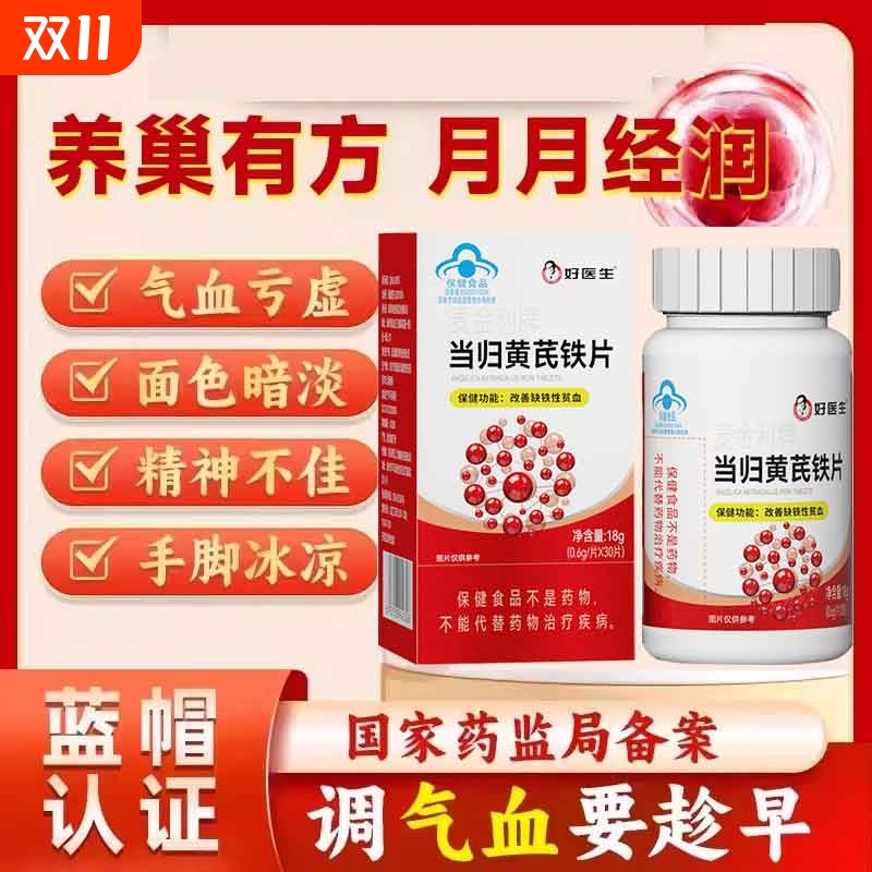当归黄芪铁片补气血缺铁性贫血铁切片月经不调活血气血不足调理量