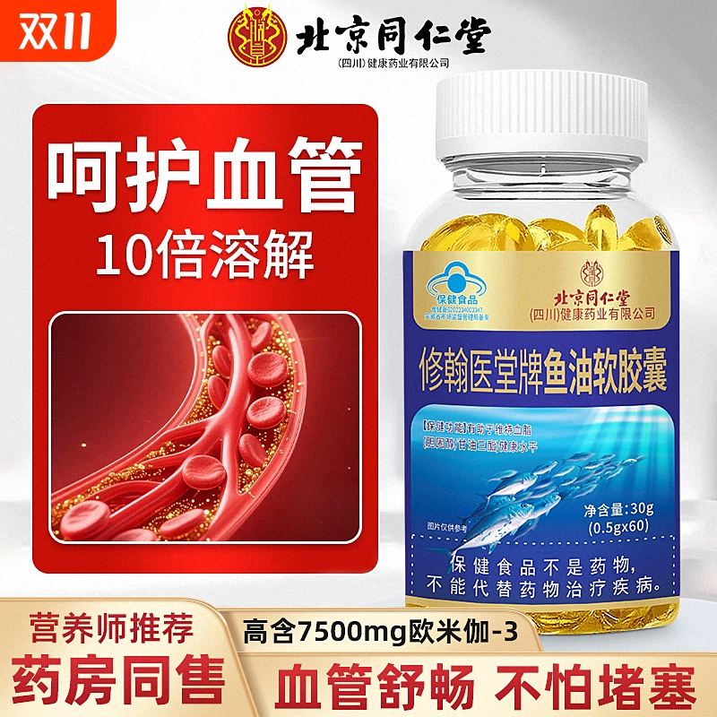 北京同仁堂鱼油软胶囊青少年中老年人护眼官方正品高纯浓度DHAEP