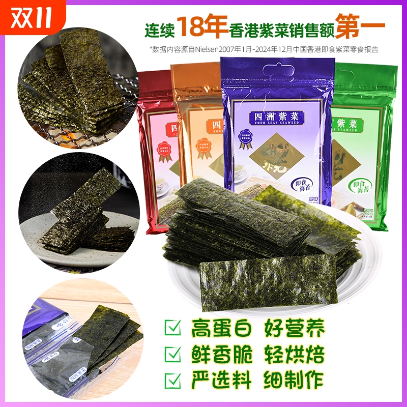 四洲紫菜海苔片拌饭寿司专用包饭零食40克50小包芥末味海味即食