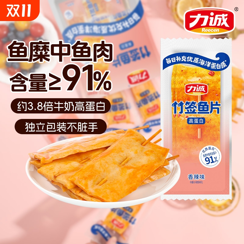 力诚130g竹签鱼片卷香辣味即食袋装熟食海味办公室解馋休闲零食