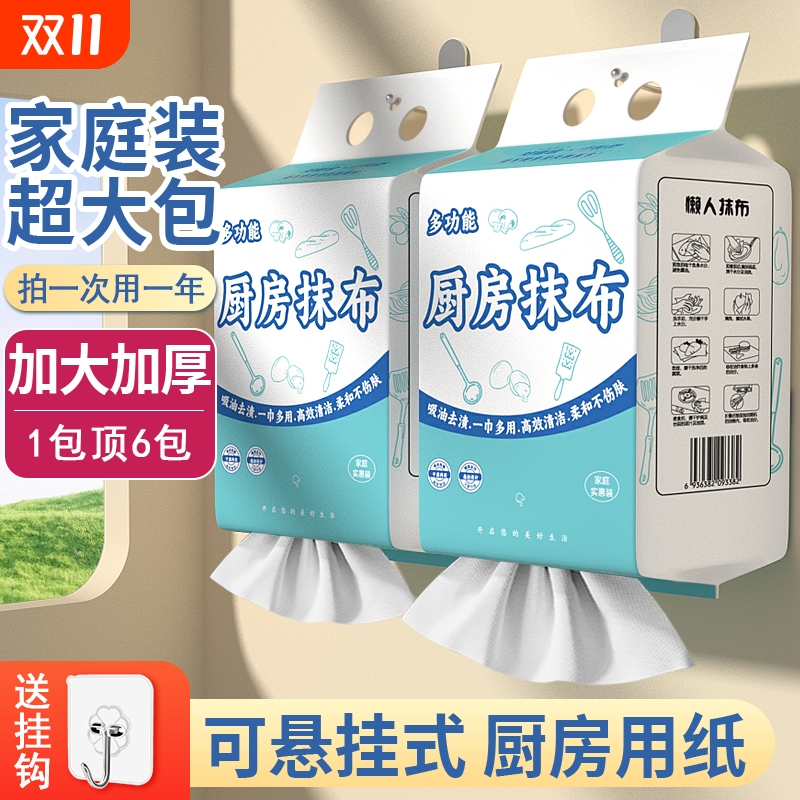 【悬挂式懒人厨房抹布】加厚款干湿两用纸巾一次性洗碗布吸水吸油