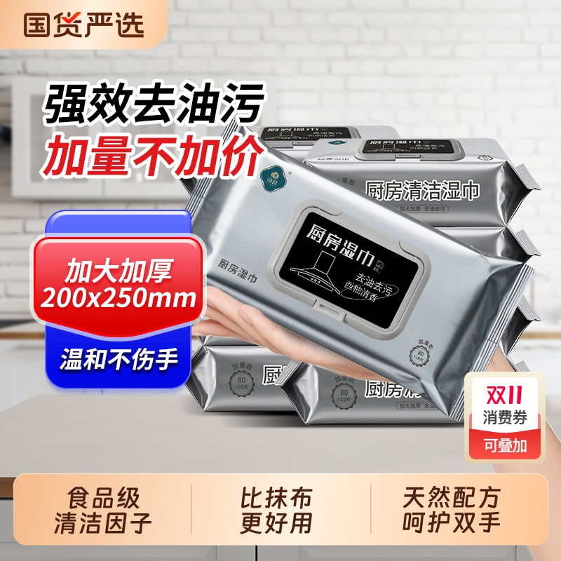 厨房湿巾强力去污去油家用加大加厚专用清洁擦纸一次性抹布旗舰店