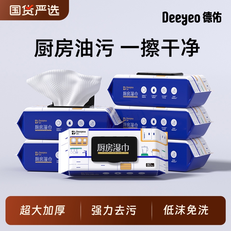 德佑厨房湿巾去污家用清洁强力去油污一次性湿纸巾专用加厚抹布