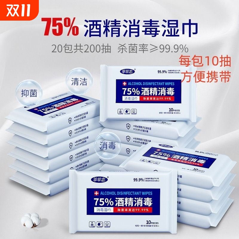 75度酒精消毒湿巾一次性小包便携学生杀菌湿纸巾单片单独独立包装