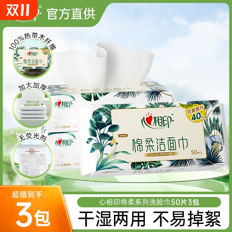 心相印干湿两用棉柔系列洁面巾一次性加大加厚洗脸巾擦脸家用学生