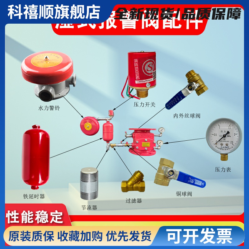 消防湿式报警阀雨淋阀配件水力警铃压力开关延时器高压软管电磁阀