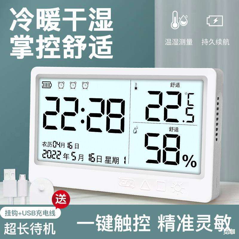 高精度电子温湿度计室内数显婴儿房干湿温度仪表家用壁挂日期时钟