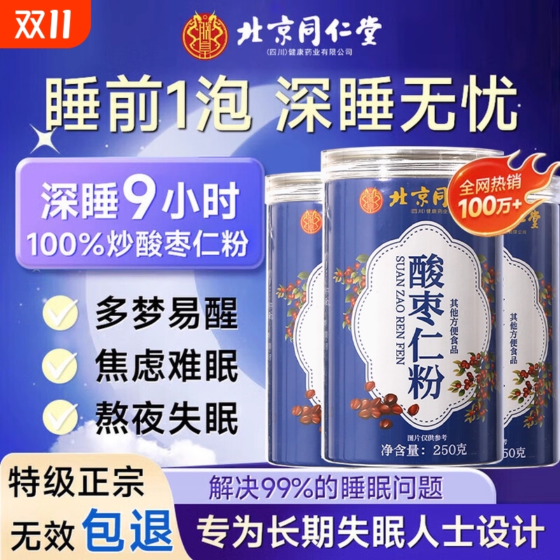 北京同仁堂酸枣仁粉熟炒正品店睡眠茶熬夜养生茶安助神眠膏茶入睡