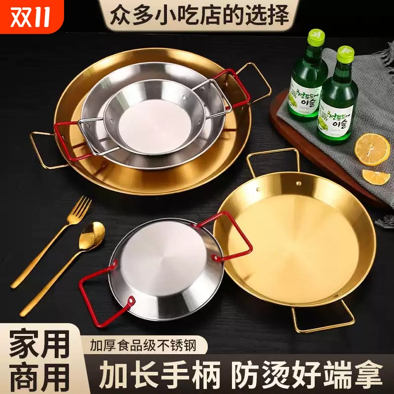 韩式海鲜盘不锈钢麻辣小龙虾盘金色薯条炸鸡双耳平底干锅意面盘