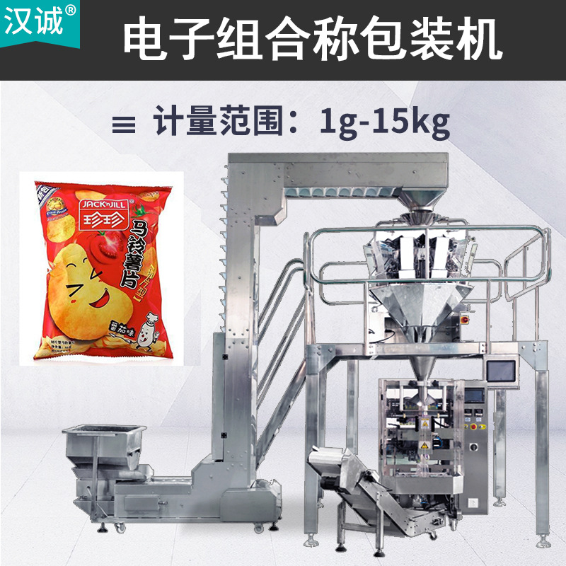全自动上料称重高速薯片包装机油炸薯条锅巴分装机立式定量包装机